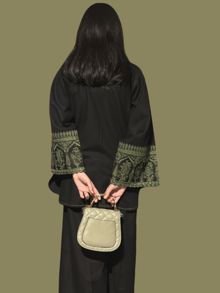 A timeless deep-green cord-set crafted in soft khaddar, elevated with delicate hand-embroidered floral motifs, pearl accents, and a relaxed silhouette. Designed for effortless elegance, Evergreen blends comfort with quiet luxury.
